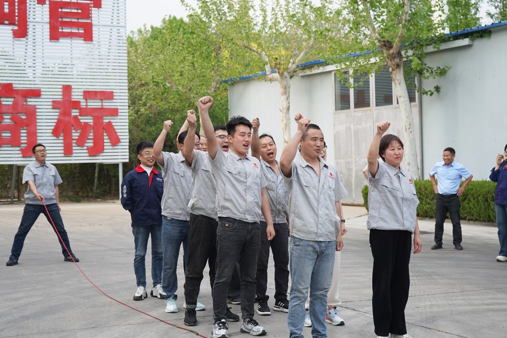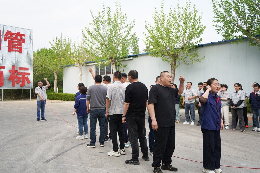 本次跳繩比賽共五支隊伍,分別是南樓辦公室、北樓辦公室、智能生產部、直管生產部、盤管生產部。戰前宣誓環節,各隊隊長振臂高呼,隊員們聲浪如潮,整個賽場沸騰著宏泰人永不言敗的熱血!